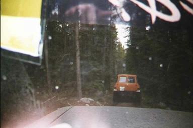 Right as I was crossing a mud hole, FRDZLLA came to a halt behind me with a radiator hose that had lost a clamp. I backed up to lend a hand, but everything was under control. The hose was re-clamped, and Bill Springer topped off the radiator with about 2 and a half gallons of water. All was well, and we continued on.