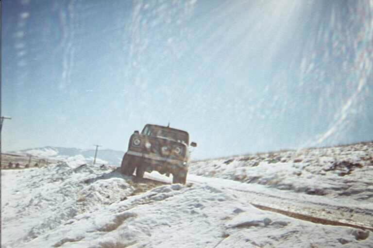 Here *I* am driving. I took a slightly different line trying to come up, and started "walking" downhill sideways thanks to the rear Tracklok.. but I did throw some snow!