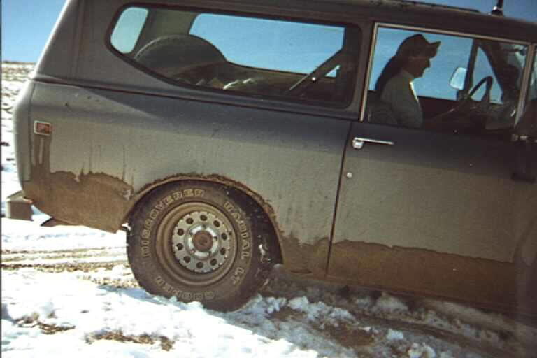 The passenger side rear tire is fully stuffed.. it nearly touches the rusted out section of the fender. This is one of my new 31x10.50" Cooper Discoverer STTs.. the fronts are still the BFG Trail TAs.