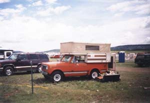The next morning I made my farewells to Bill and Darrel and the others as they left to go wheelin'.. then I made my way to the showers, and let my sleeping bags dry out on top of the Scout while I showered. I then packed up camp (leaving the lantern, of course), visited with the McFarling children for a bit.. then helped out some with some folks from Kansas, trying to change out the input gear on their Dana 300.. and then I stopped to see Eldon and Rose as I left Fairplay, headed towards Moab.