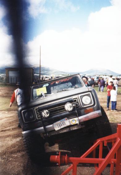 Willy and I fired up our 'Binders and headed to the big line-up to take our places and be judged. As I was backing into my spot, trying to get in-line with the others, I started to drive off the back of the dirt bank we were parking along! At first, I was alarmed.. then I thought.. Cool, I can show off my rear articulation! And so it went that every truck after me did the same thing. :-)