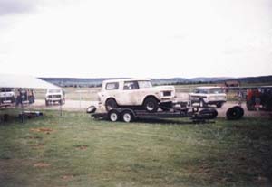Willy's red SSII is on the left, with my grey '77 to it's right, and an unfinished yellow 800 to the right of my Scout. Looking in the background, you can notice that the storm clouds were already brewing.