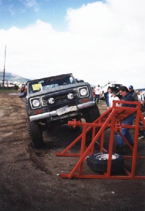 Willy and I fired up our 'Binders and headed to the big line-up to take our places and be judged. As I was backing into my spot, trying to get in-line with the others, I started to drive off the back of the dirt bank we were parking along! At first, I was alarmed.. then I thought.. Cool, I can show off my rear articulation! And so it went that every truck after me did the same thing. :-)