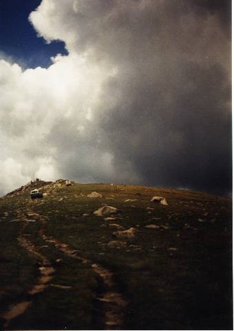 The next morning I made my farewells to Bill and Darrel and the others as they left to go wheelin'.. then I made my way to the showers, and let my sleeping bags dry out on top of the Scout while I showered. I then packed up camp (leaving the lantern, of course), visited with the McFarling children for a bit.. then helped out some with some folks from Kansas, trying to change out the input gear on their Dana 300.. and then I stopped to see Eldon and Rose as I left Fairplay, headed towards Moab.
